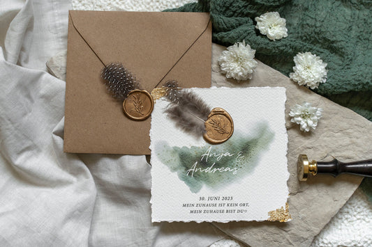 Save the Date Karte - Moosgrünes Aquarell