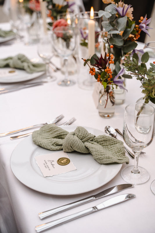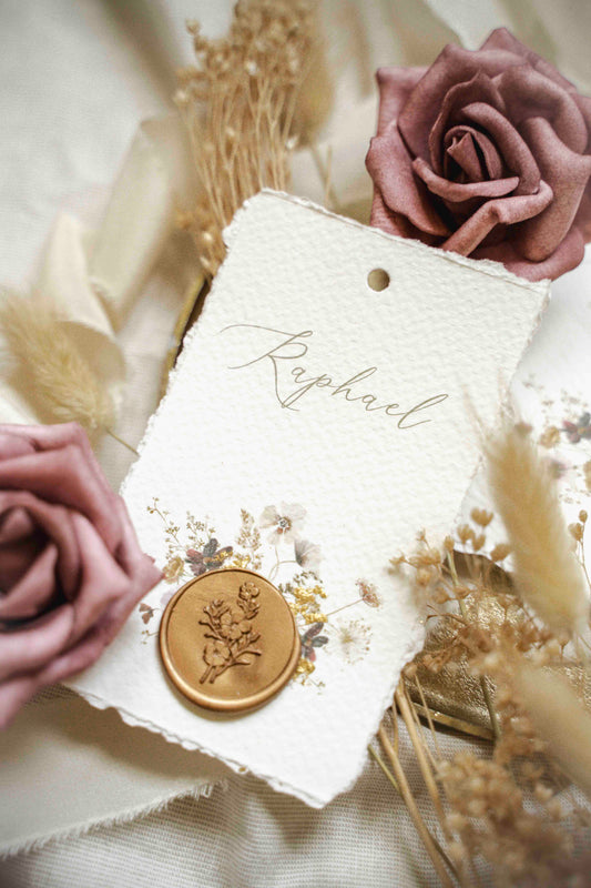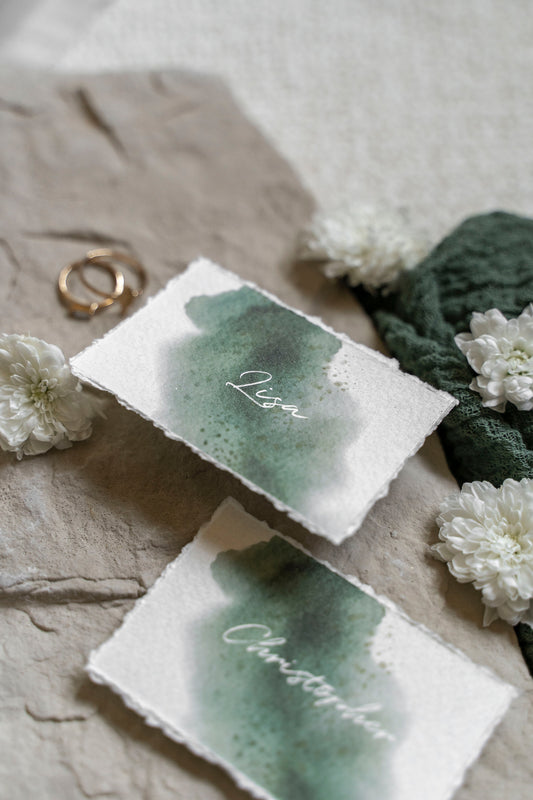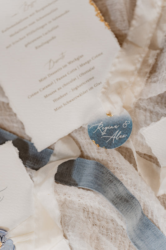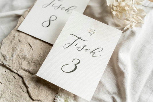 Für eure Hochzeit erstellen wir passend zu eurem Farbkonzept handgemachte Tischkarten, die in Erinnerung bleiben.
